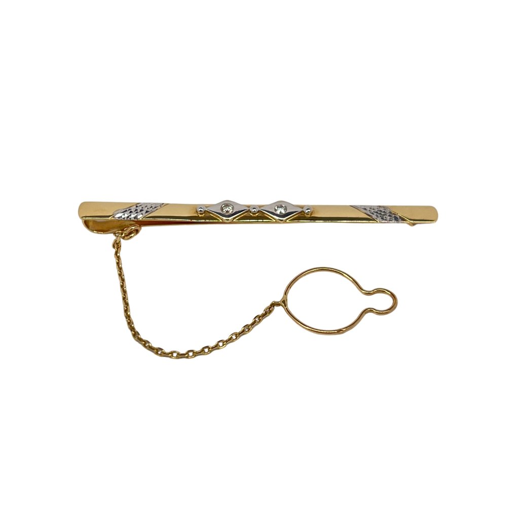 Zlatá spona na kravatu z kombinovaného zlata so vzorom a zirkónmi
