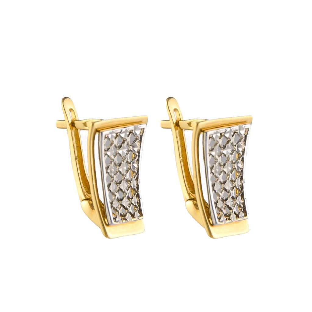 Zlaté dvojfarebné náušnice s mriežkovaným vzorom
