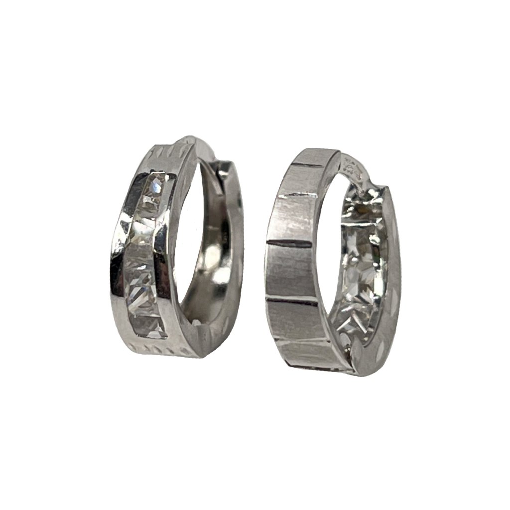 Zlaté kruhy z bieleho zlata so zirkónmi a gravírovaním