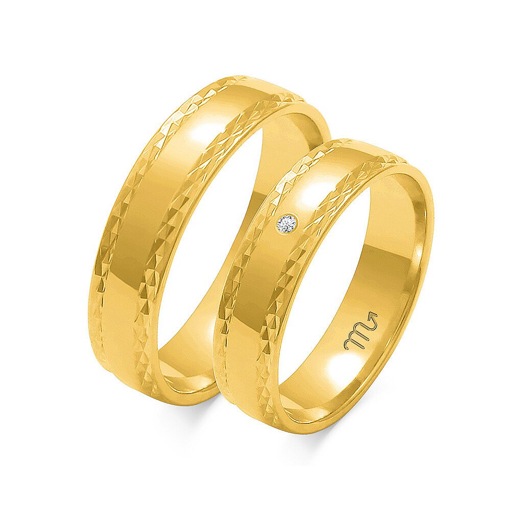 Svadobná obrúčka lesklá gravírovaná bez kamienka O-104