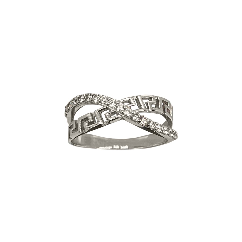 Prsteň z bieleho zlata so zirkónmi a antickým vzorom