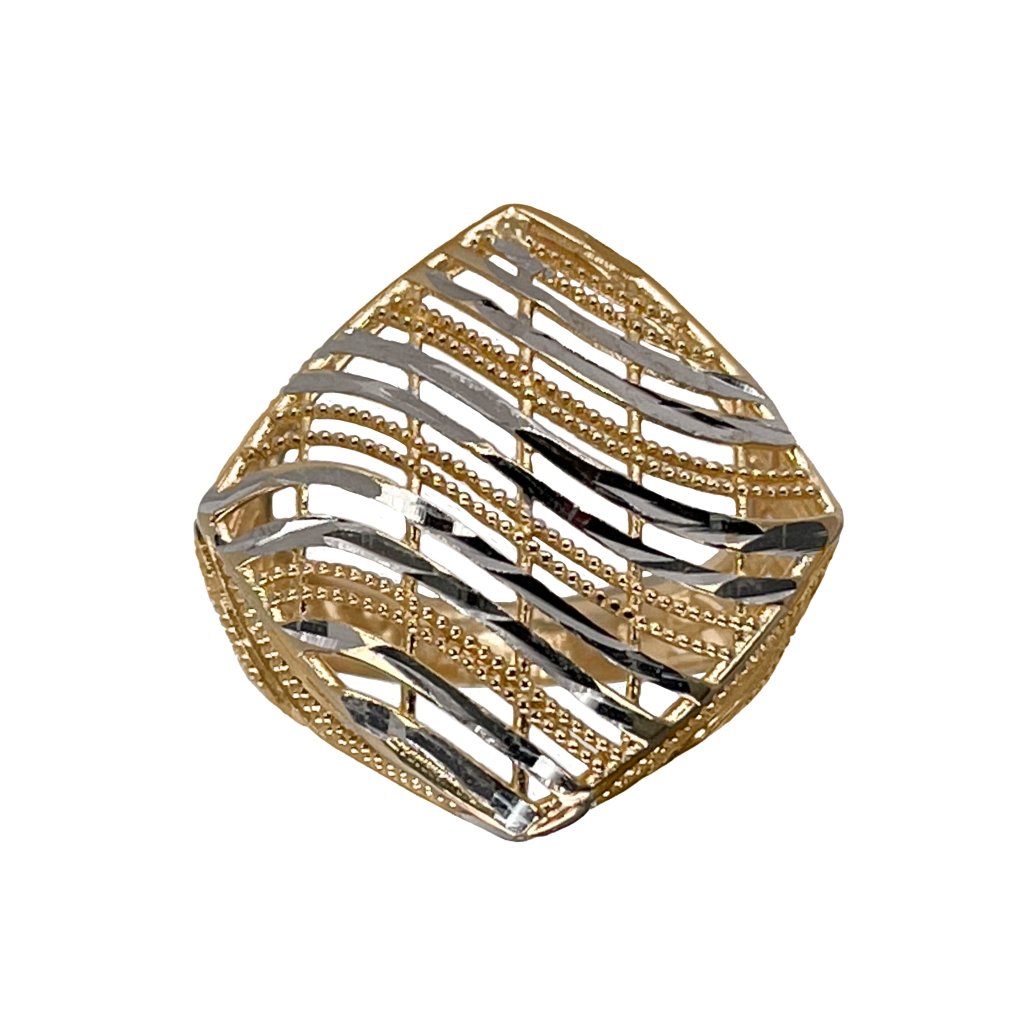 Zlatý dvojfarebný prsteň s lesklými iniami Amina