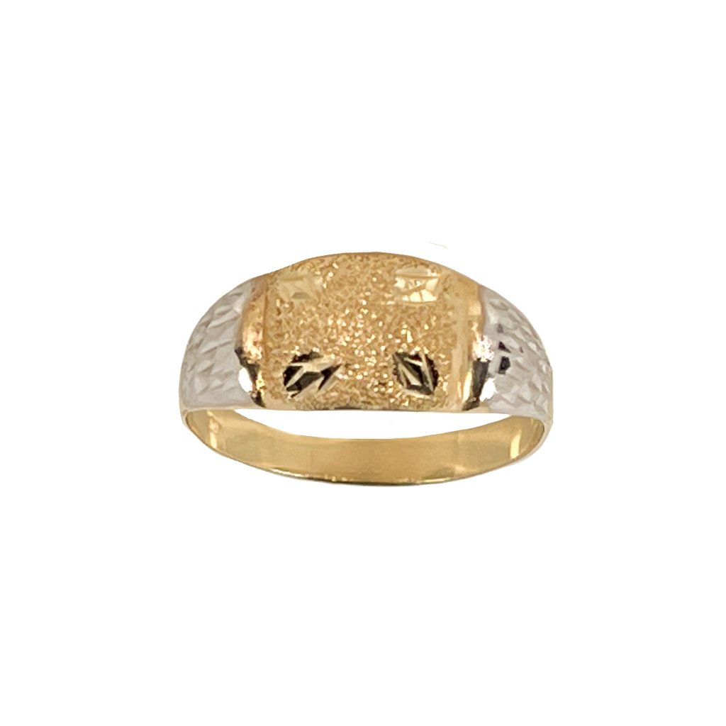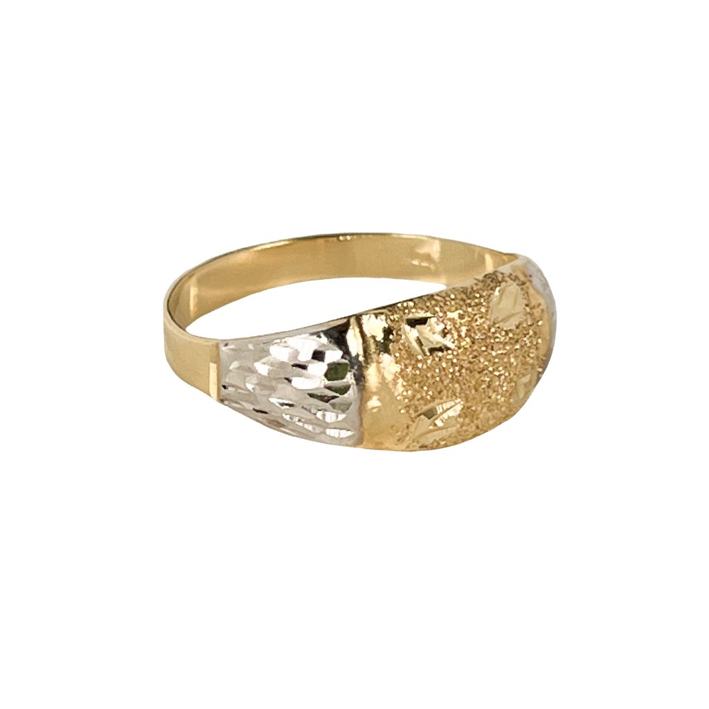 Zlatý dvojfarebný prsteň s pieskovaním a gravírom