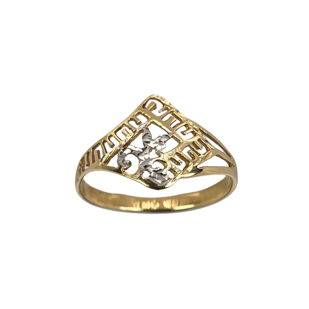 Zlatý dvojfarebný prsteň so vzorom a gravírovaním