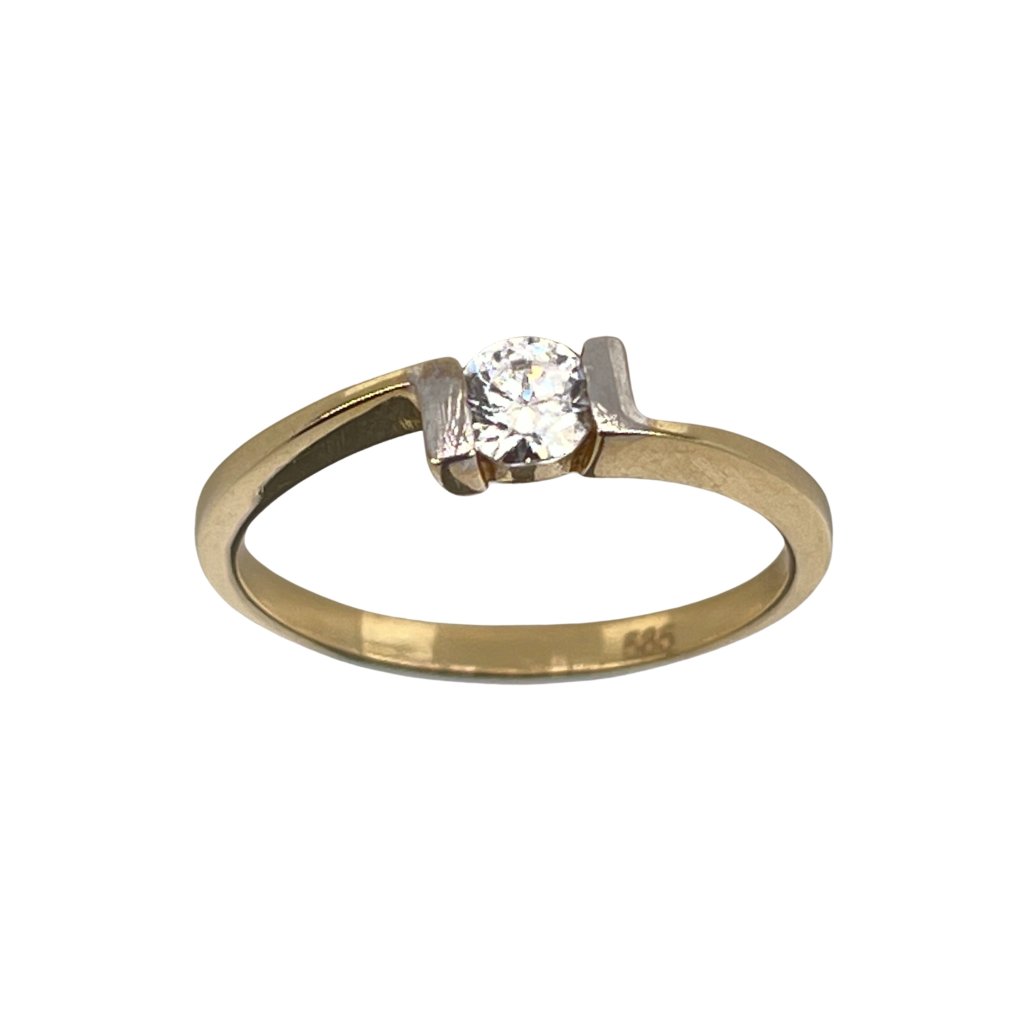 Zlatý dvojfarebný zásnubný prsteň so zirkónom