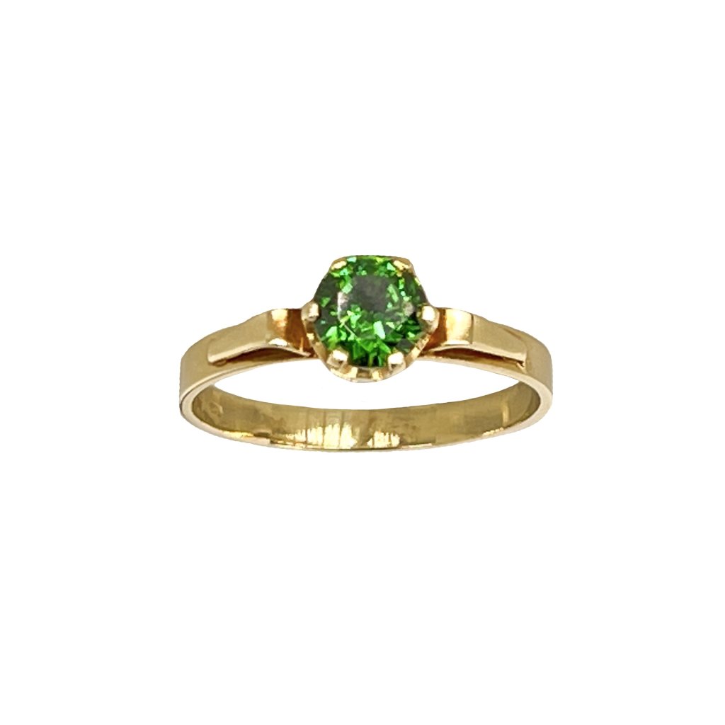 Zlatý lesklý prsteň so zeleným zirkónom