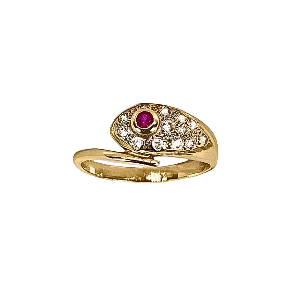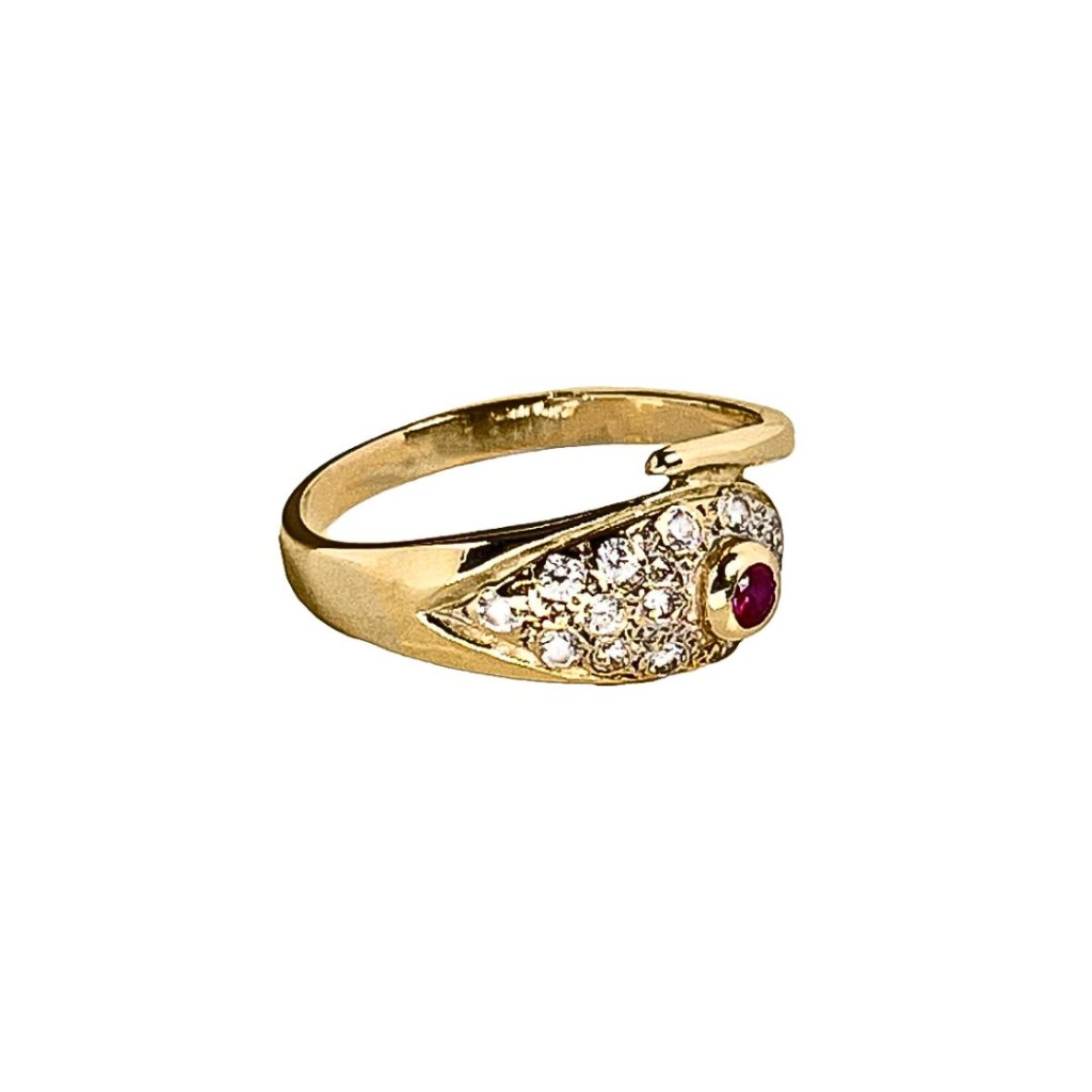 Zlatý prsteň s ružovým a čírymi menšími zirkónmi