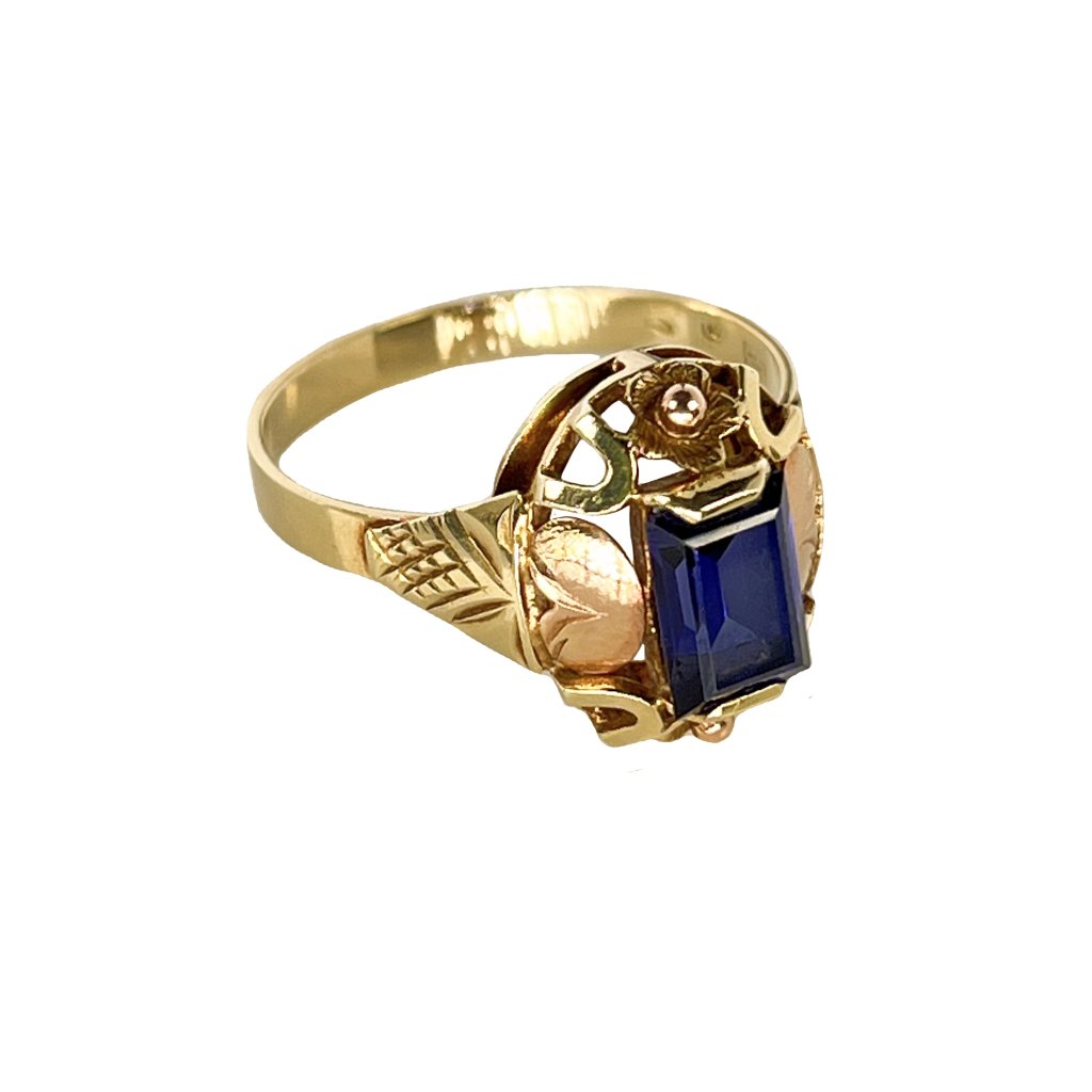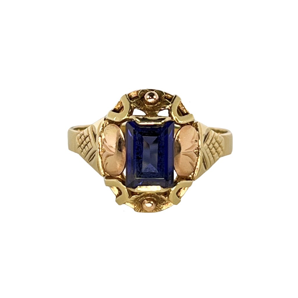 Zlatý prsteň dvojfarebný s modrým zirkónom