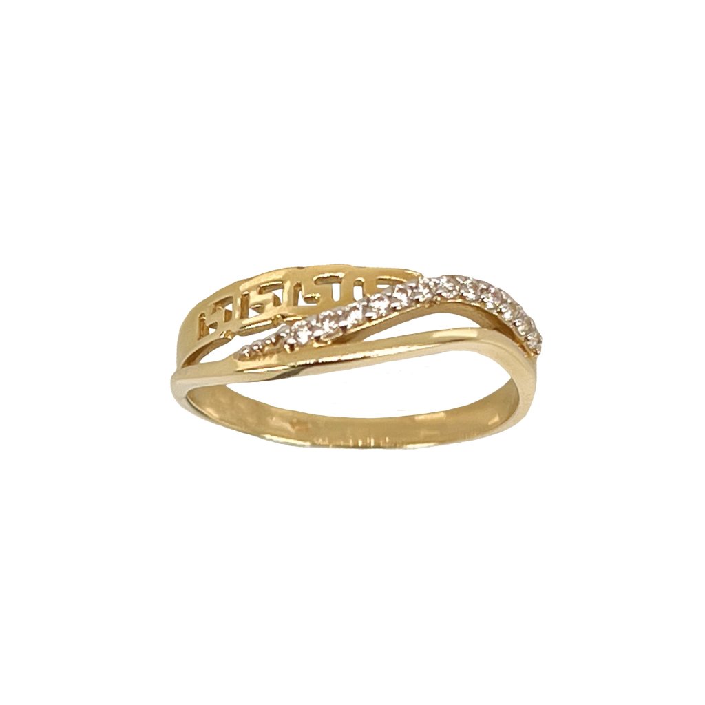 Zlatý prsteň so zirkónmi a antickými vzormi
