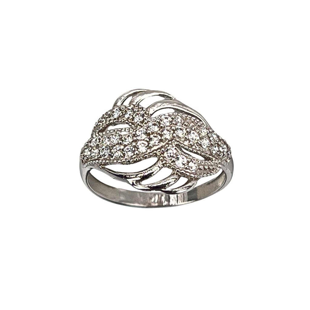 Zlatý prsteň z bieleho zlata so zirkónmi a lesklými líniami